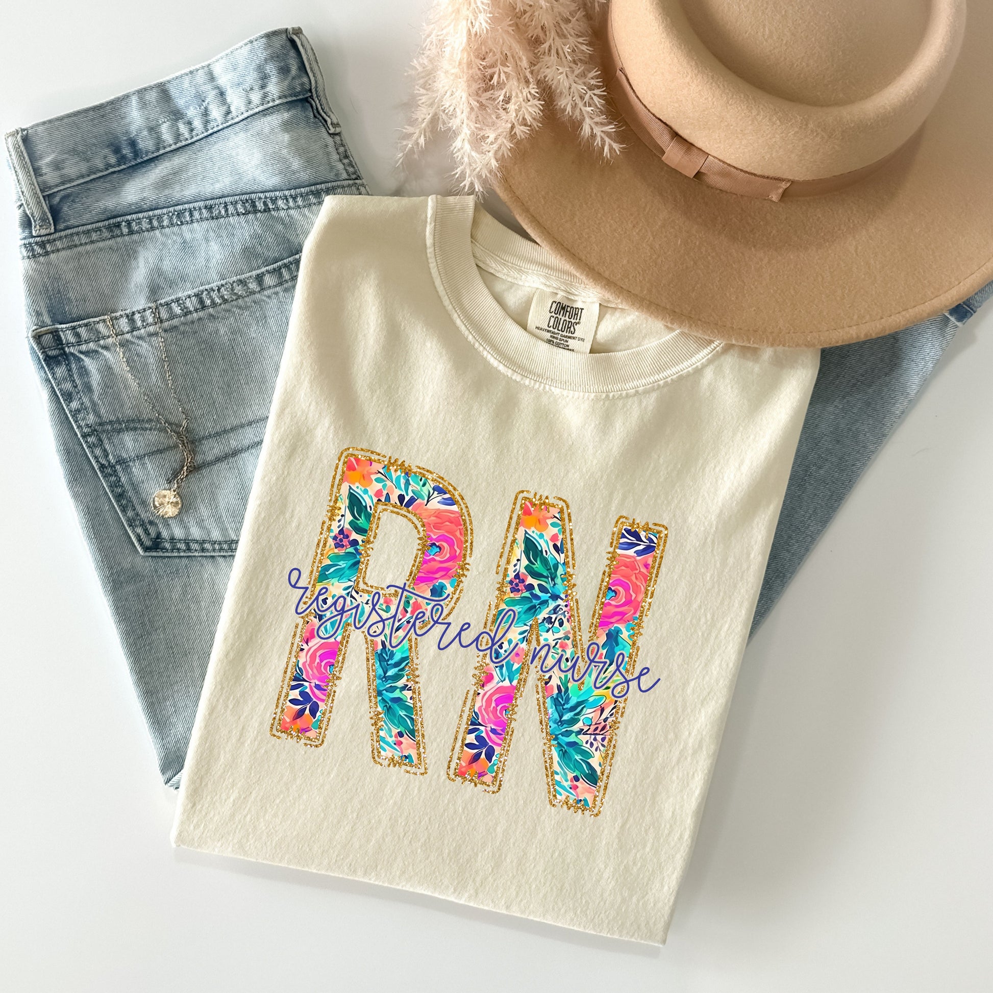 Show your nursing pride with a feminine touch! This Gildan Softstyle T-shirt features a beautifully designed “RN” accented with delicate floral details, creating the perfect blend of strength and elegance.