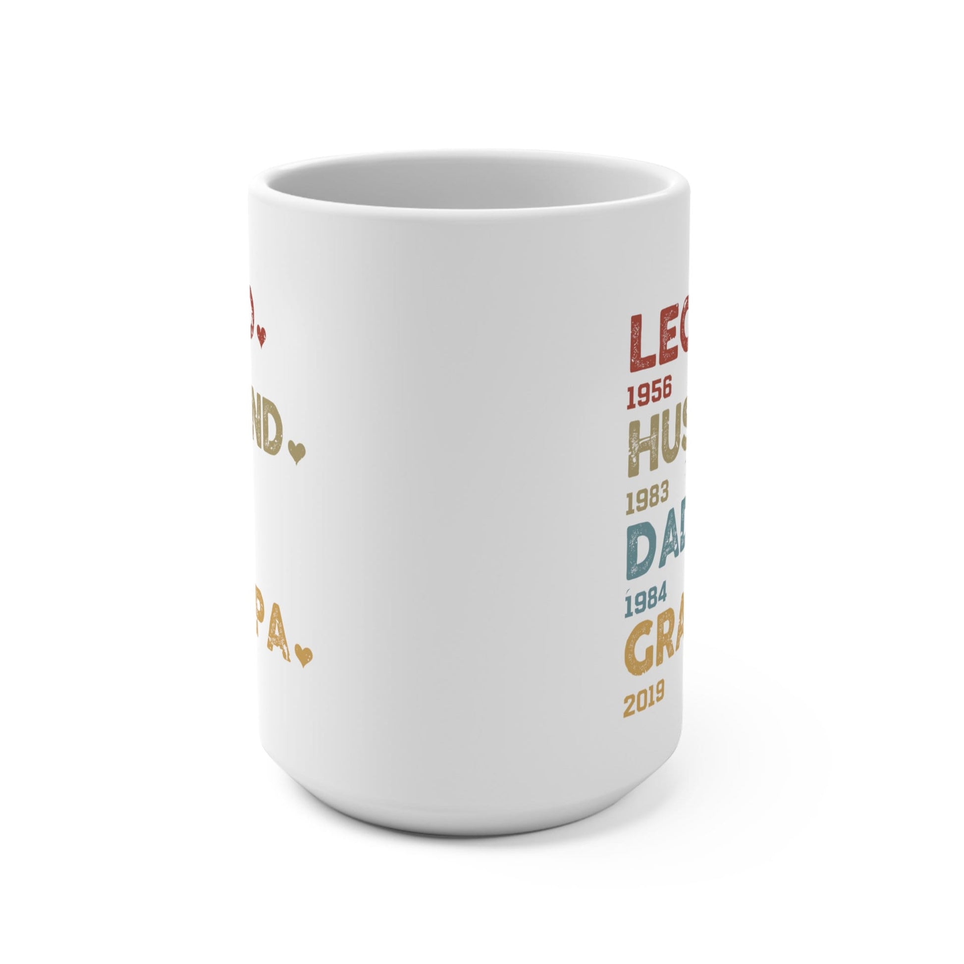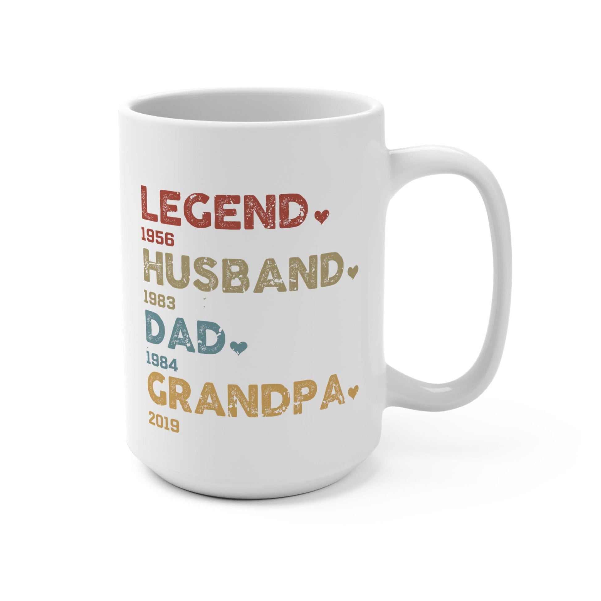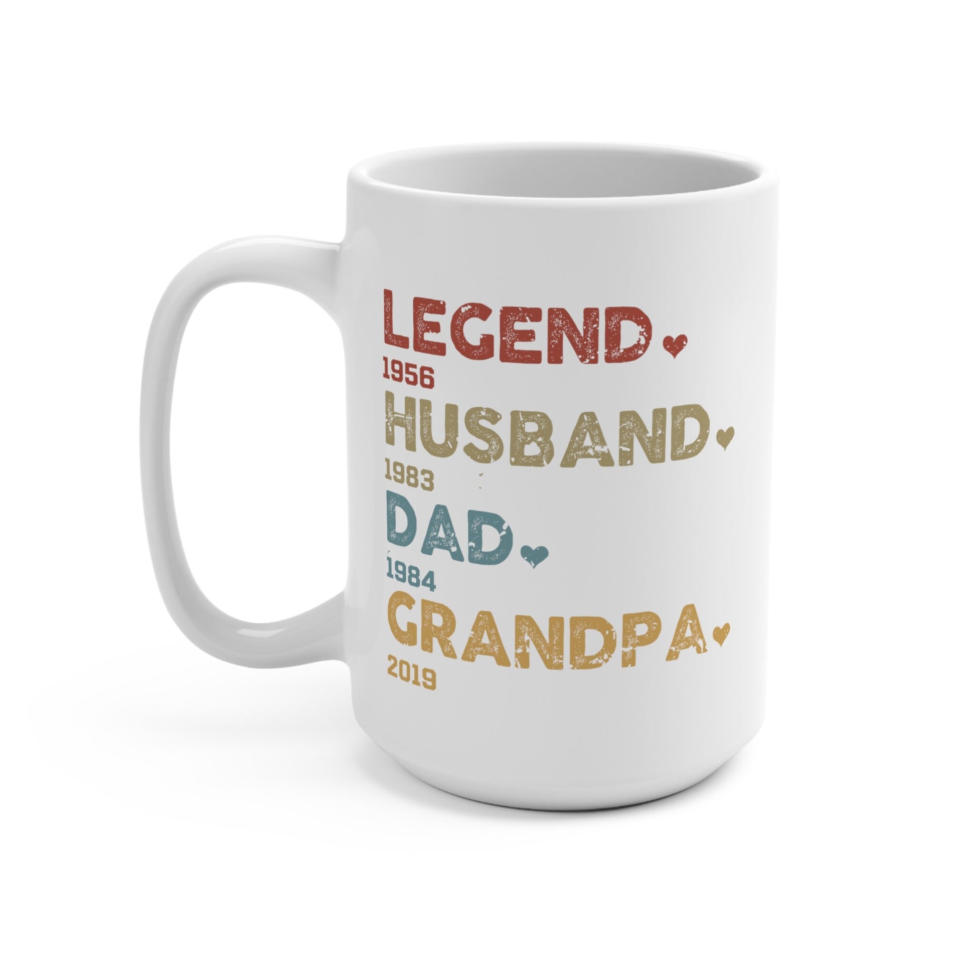 Crafted with care and designed to honor the Legend, Husband, Dads, and Grandpas alike, this white ceramic mug embodies timeless elegance and sentimental value. Its pristine surface whispers of cherished mornings spent sipping coffee or tea, accompanied by stories that span generations. As durable as the bonds it represents, this mug is more than a vessel; it's a symbol of love, respect, and the enduring legacy of those who hold it dear.