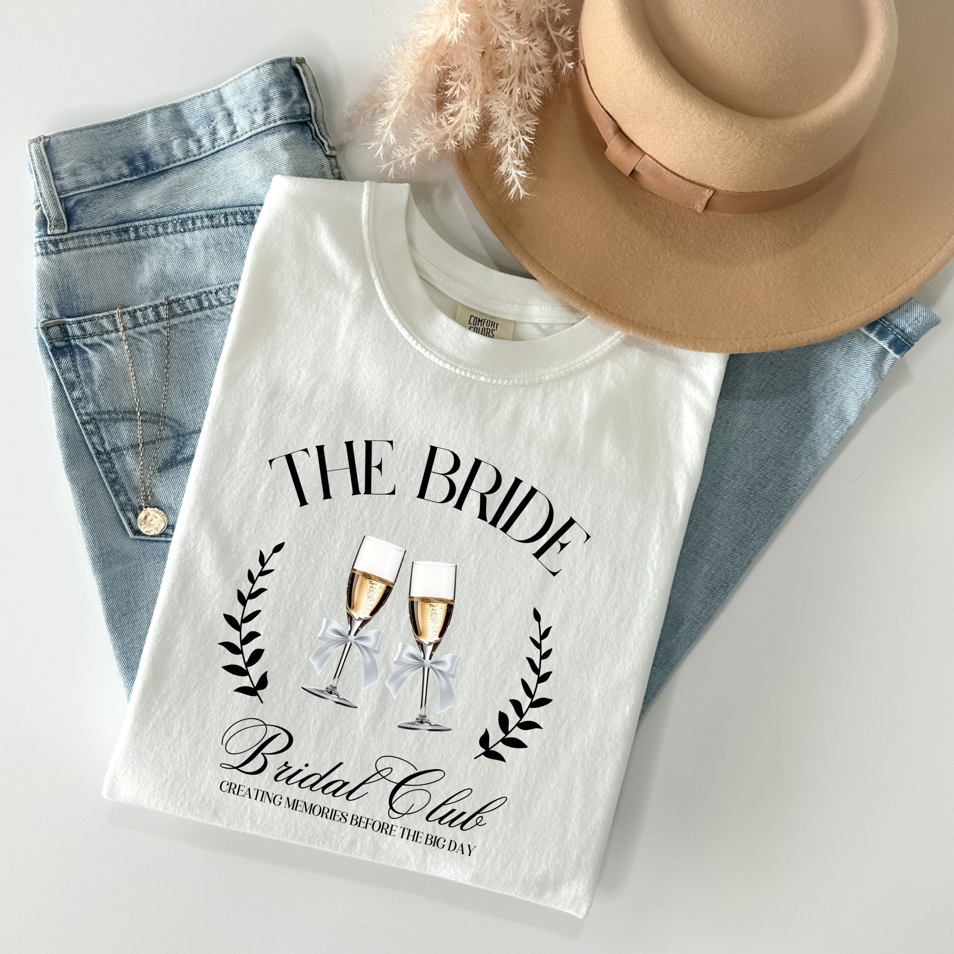 Crown yourself queen of the “Bridal Club” in this fabulous “The Bride” T‑shirt—perfect for every bride-to-be ready to party, pose, and walk down the aisle! This funny and heartfelt tee makes a great gift for your VIP bride who wants to shine brighter than the engagement ring (and maybe start a dance-off). Whether it's bridal showers, bachelorette weekends, or wedding prep, this shirt ensures the bride stands out, sparkle in every selfie included!